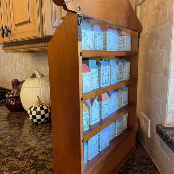 Complete Set of 24 Spice Jars – Each jar is a miniature Victorian-style house representing a different spice