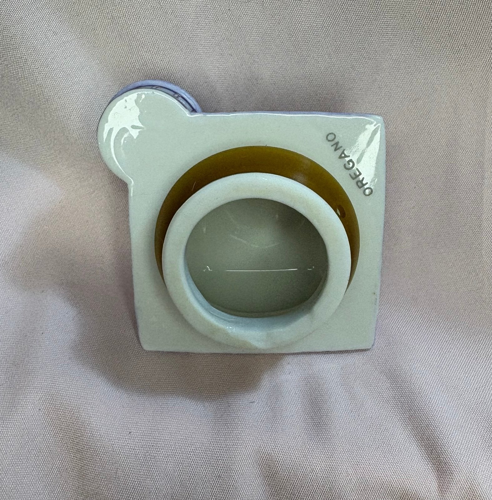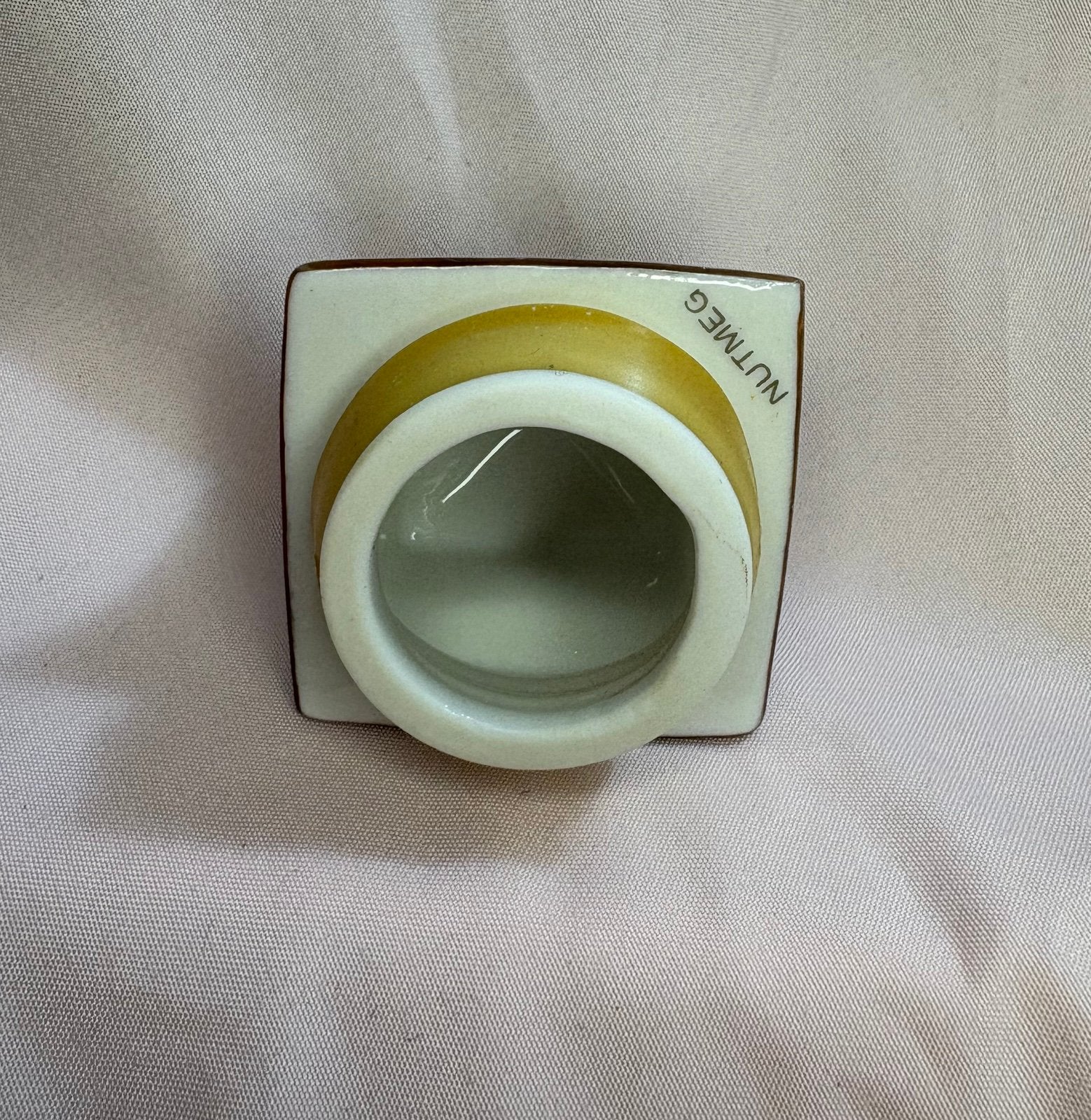 Some lid seals (celery, clove, nutmeg, oregano, paprika, and thyme) show yellowing due to age, but this does not affect the functionality or appearance of the jars.