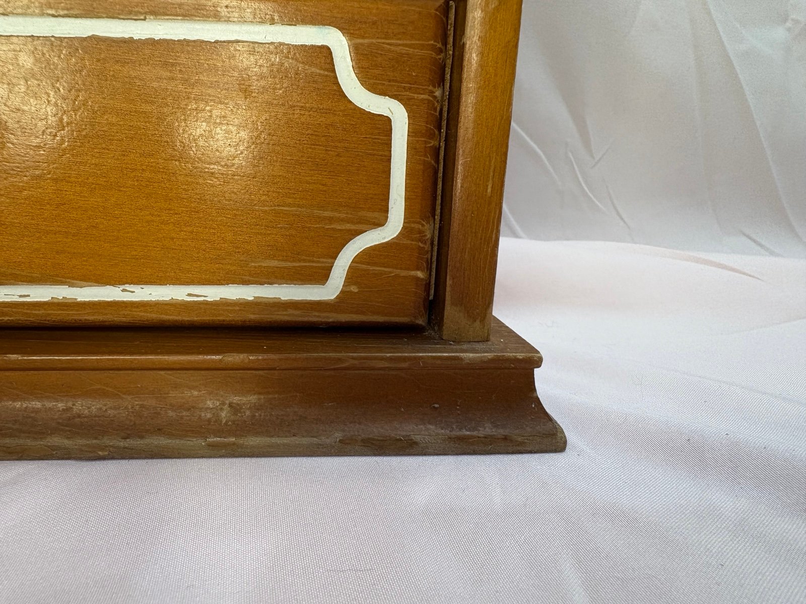 The rack has slight damage to the bottom, but it can be easily restored with a new coat of varnish and paint.