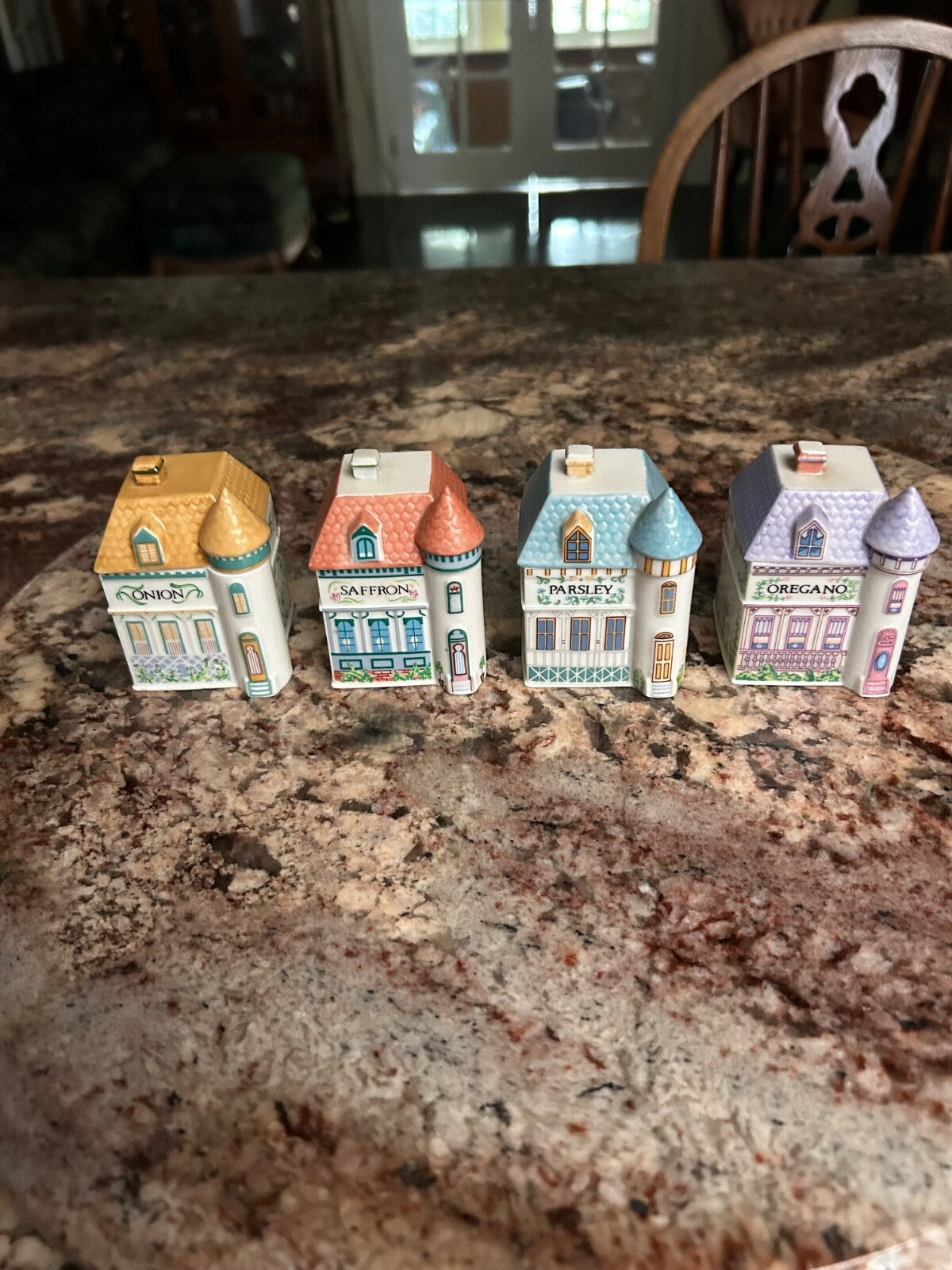 • Complete Set of 24 Spice Jars – Each jar represents a unique spice, depicted in beautiful Victorian house designs