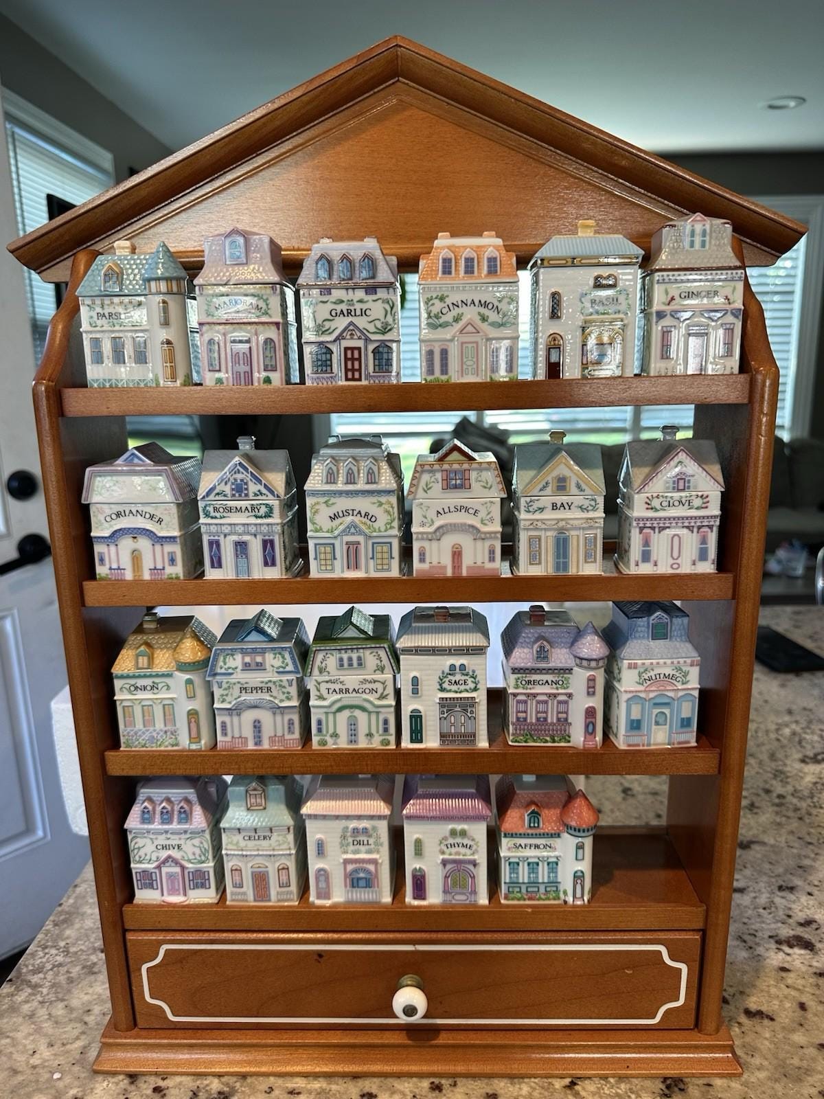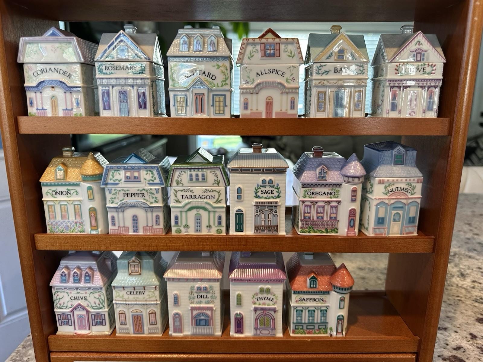 1989 Lenox Spice Village Spice Jar Set of 23 Houses & Wooden Rack Collectible