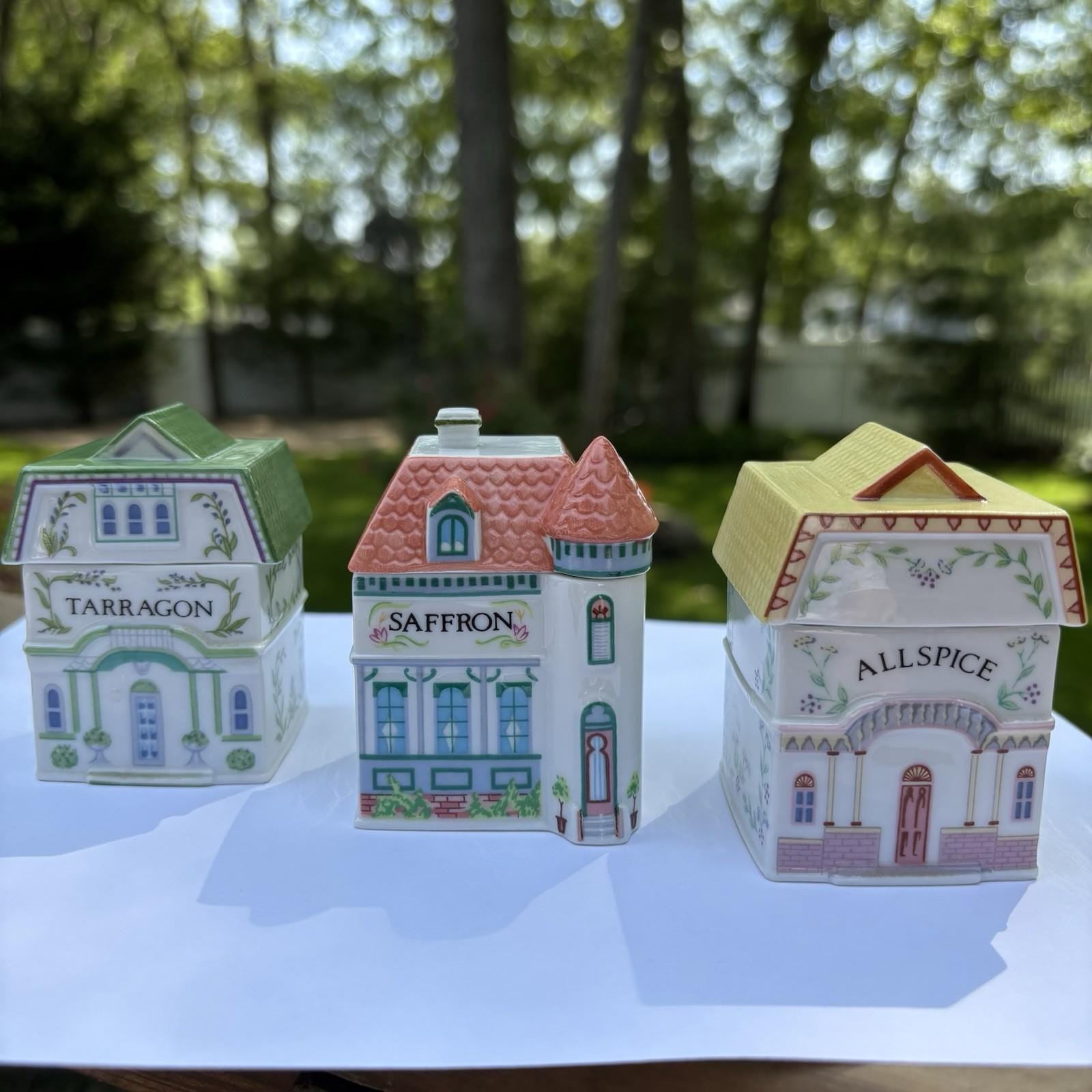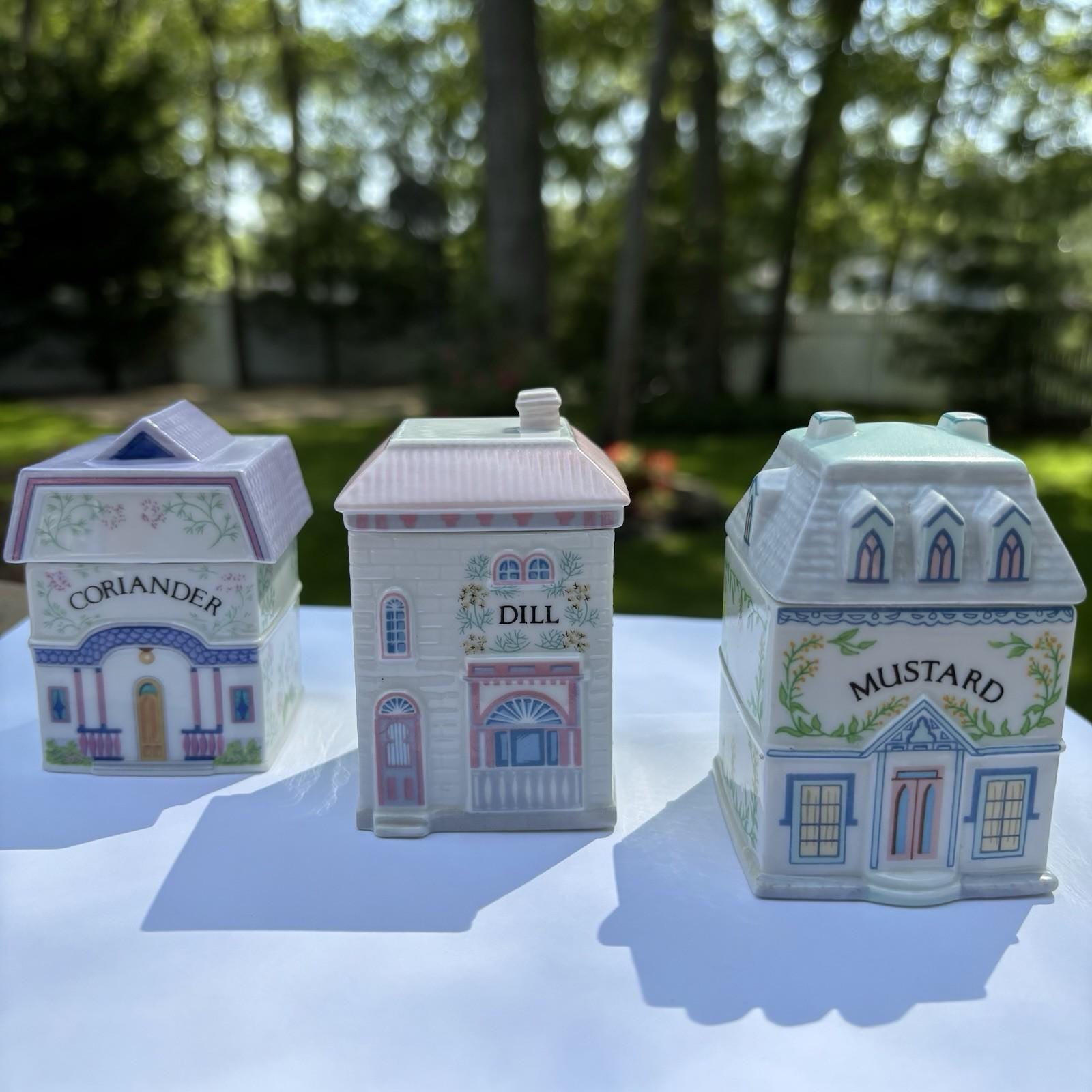 Lenox Spice Village 1989 Vintage Set with Wooden House Rack and 24 Jars