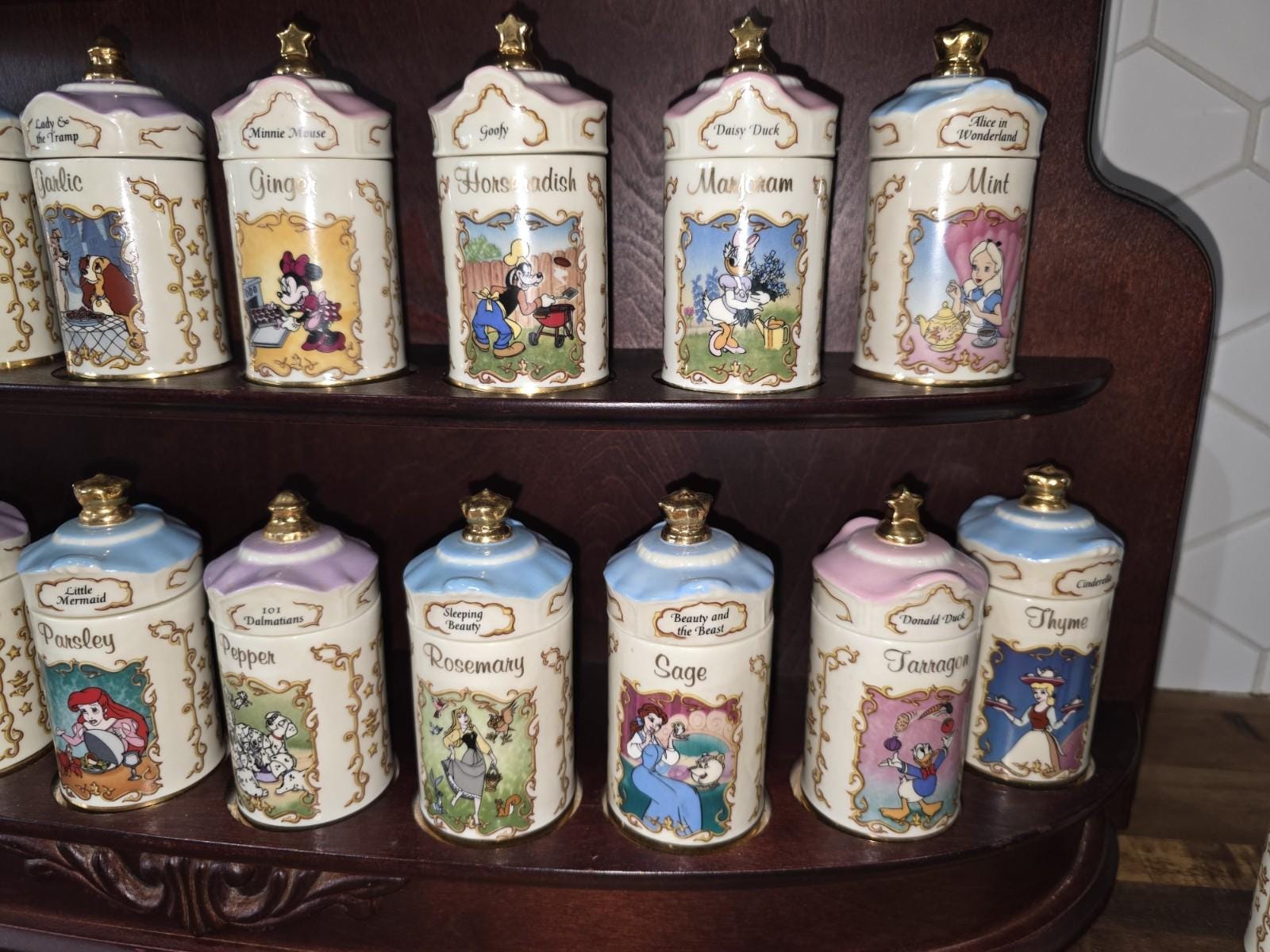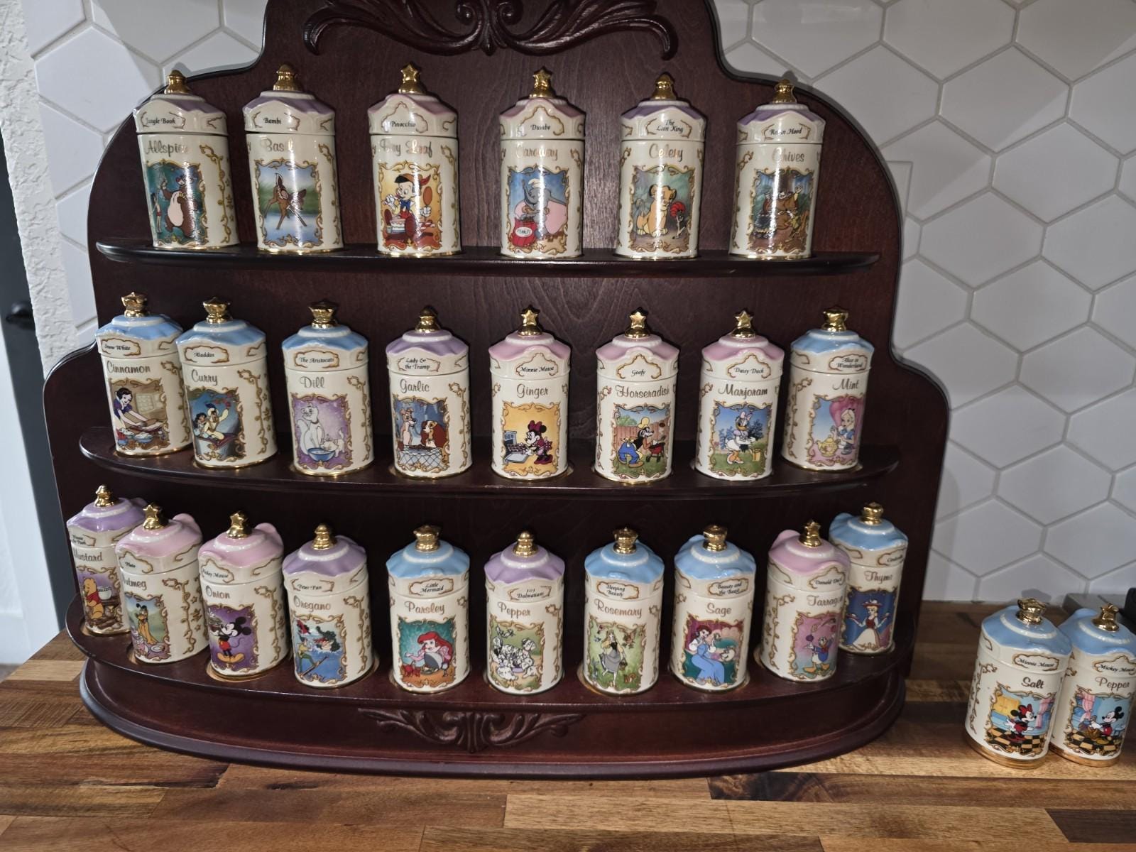 Walt Disney Lenox 24 Spice Jar Set & Wooden Rack 1995 Salt/ Pepper Shakers Boxes